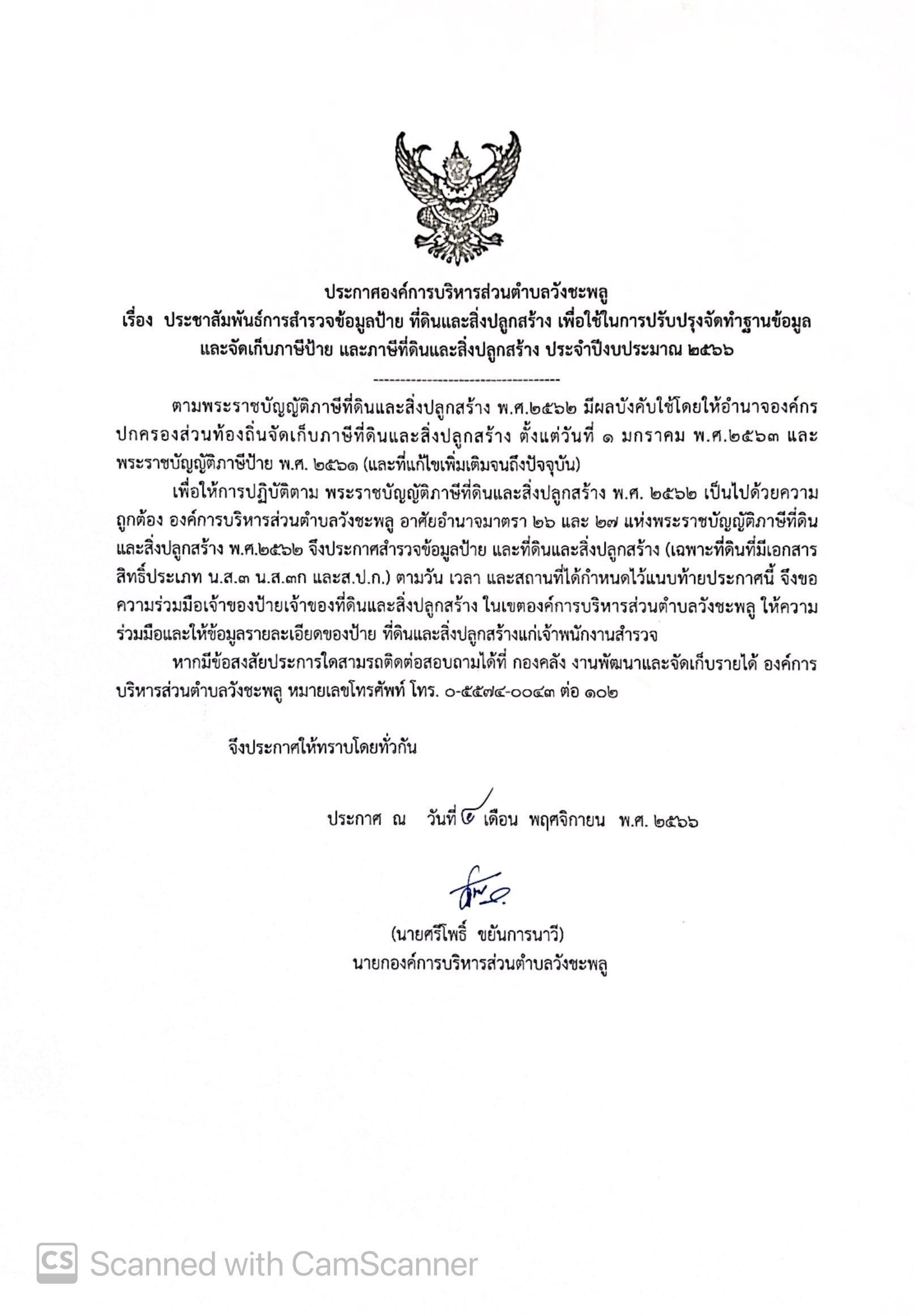 การสำรวจข้อมูลป้าย ที่ดินและสิ่งปลูกสรา้ง เพื่อใช้ในการปรับปรุงจัดทำฐานข้อมูลและจัดเก็บภาษี และภาษีที่ดินและสิ่งปลูกสร้าง ประจำปีงบประมาณ 2566