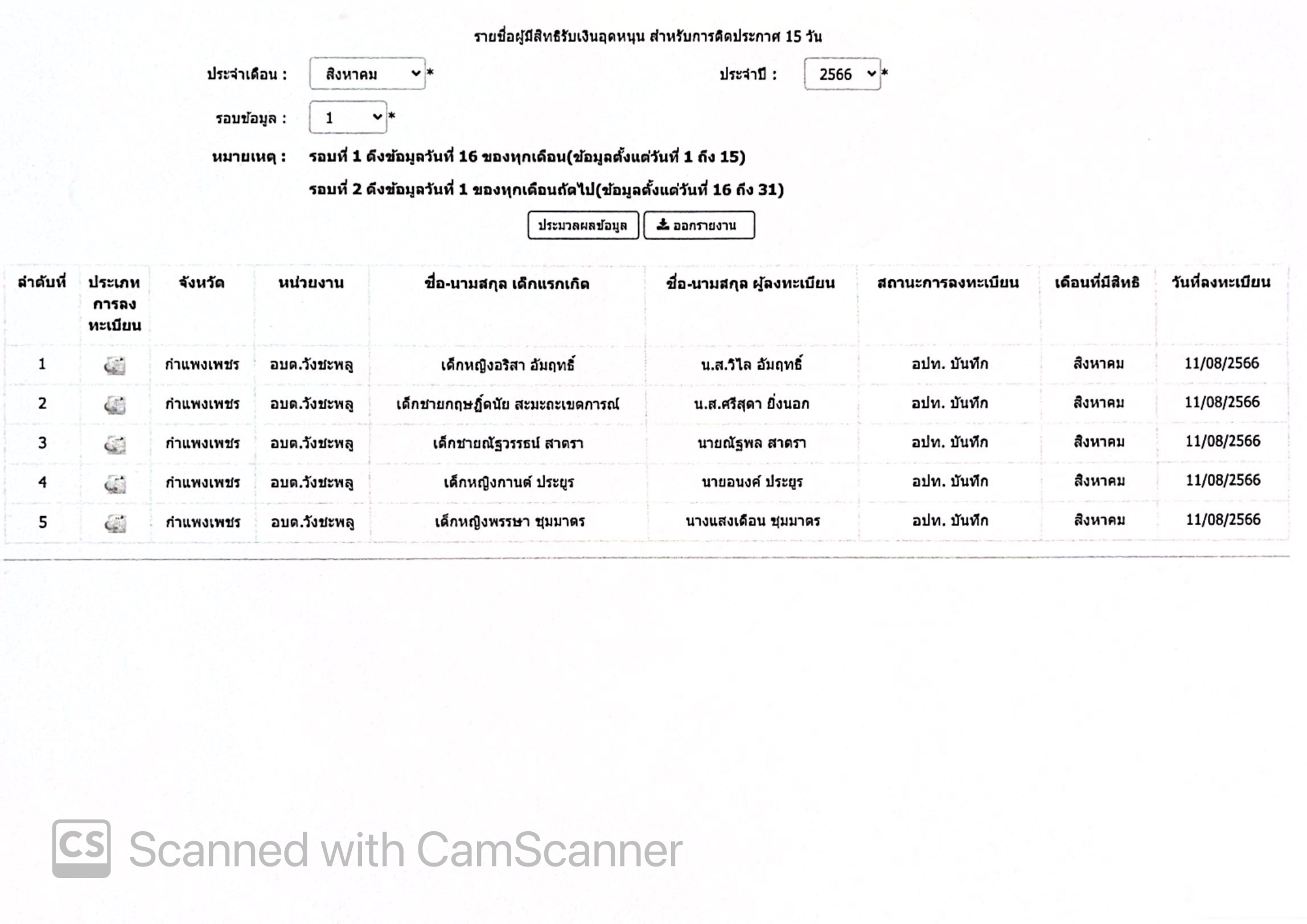 รายชื่อผู้มีสิทธิรับเงินอุดหนุนเพื่อการเลี้ยงดูเด็กแรกเกิด ข้อมูลวันที่ 1-15 สิงหาคม 2566