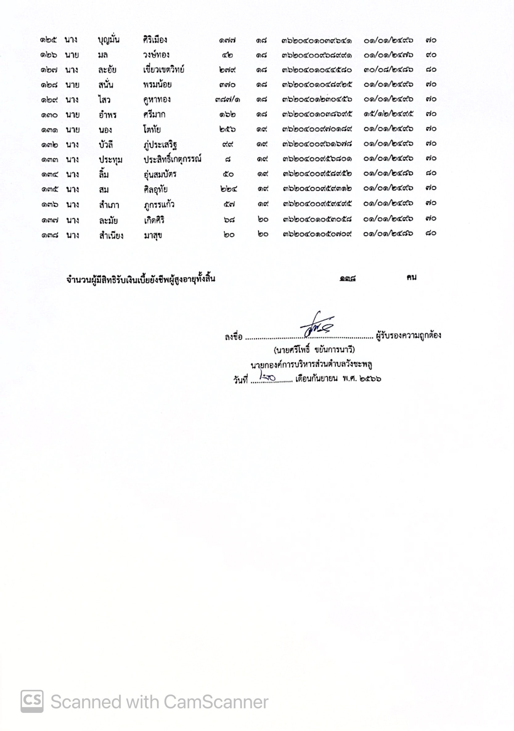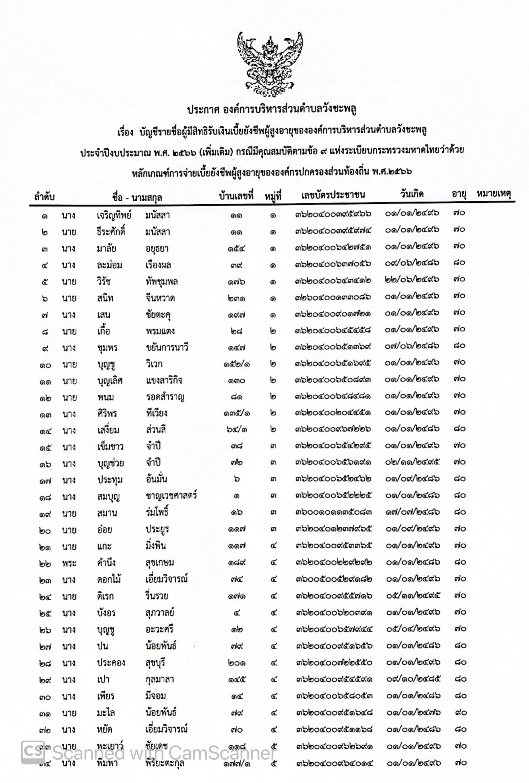 ประกาศองค์การบริหารส่วนตำบลวังชะพลู เรื่อง รายชื่อผู้มีสิทธิรับเงินเบี้ยยังชีพผู้สูงอายุขององค์การบริหารส่วนตำบลวังชะพลู ประจำปีงบประมาณ พ.ศ. 2566 (เพิ่มเติม) กรณีมีคุณสมบัติตามข้อ 9 แห่งระเบียบกระทรวงมหาดไทยว่าด้วยหลักเกณฑ์การจ่ายเบี้ยยังชีพผู้สูงอายุองค์กรปกครองส่วนท้องถิ่น พ.ศ.2566