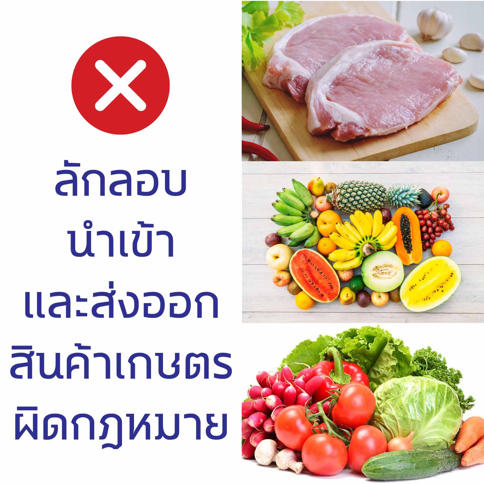 กระทรวงเกษตรและสหกรณ์มีนโยบายปราบปรามการลักลอบนำเข้าและส่งออกสินค้าเกษตรผิดกฎหมายตามแนวชายแดนช่องทางธรรมชาติ และชายแดนทะเล จึงประชาสัมพันธ์เพื่อให้ประซาชนรับทราบ และสอดส่องเพื่อป้องกันไม่ให้มีการกระทำผิดกฎหมายในพื้นที่