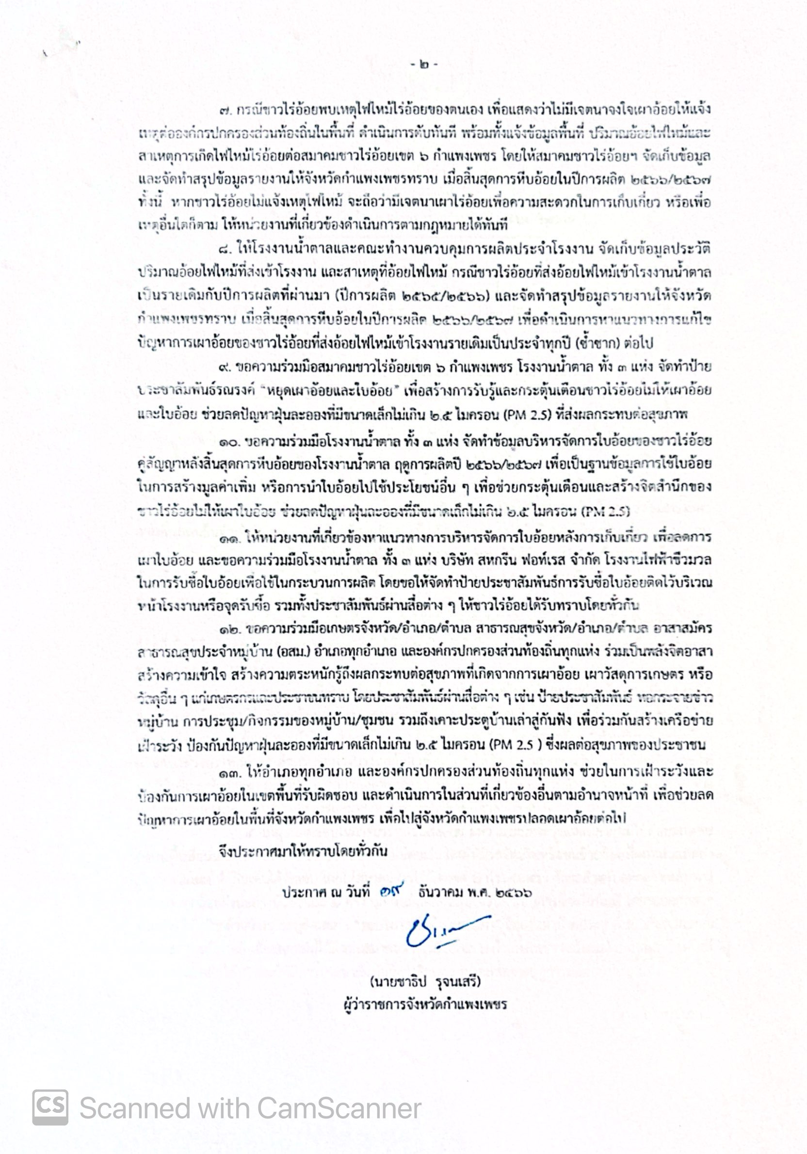 -ประกาศจังหวัดกำแพงเพชร เรื่อง มาตรการและแนวทางแก้ไขปัญหาการเผาอ้อยช่วงฤดูการเก็บเกี่ยวในพื้นที่จังหวัดกำแพงเพชร ฤดูการผลิดปี 2566/2567