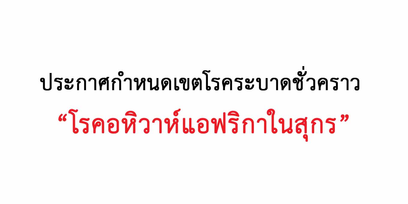 รายละเอียดตามประกาศสำนักงานปศุสัตว์อำเภอทุ่งเสลี่ยมเรื่อง กำหนดเขตโรคระบาดชั่วคราว ชนิดโรคอหิวาตี๋แอฟริกาในสุกร (Afพican swine fever : ASF)