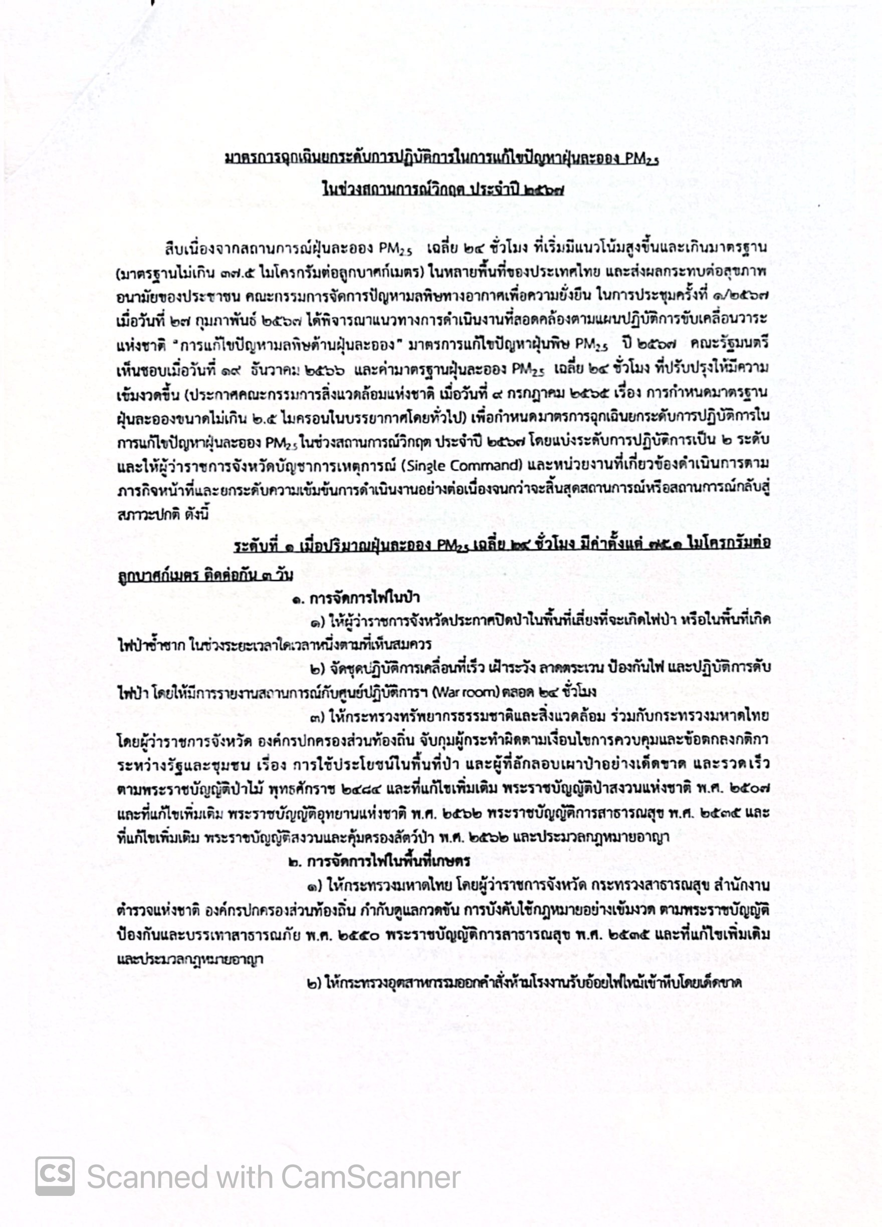 มาตรการฉุกเฉินยกระดับการปฏิบัติการในการแก้ไขปัญหาฝุ่นละออง PM 2.5 ในช่วงสถานการณ์วิกฤต ประจำปี 2567