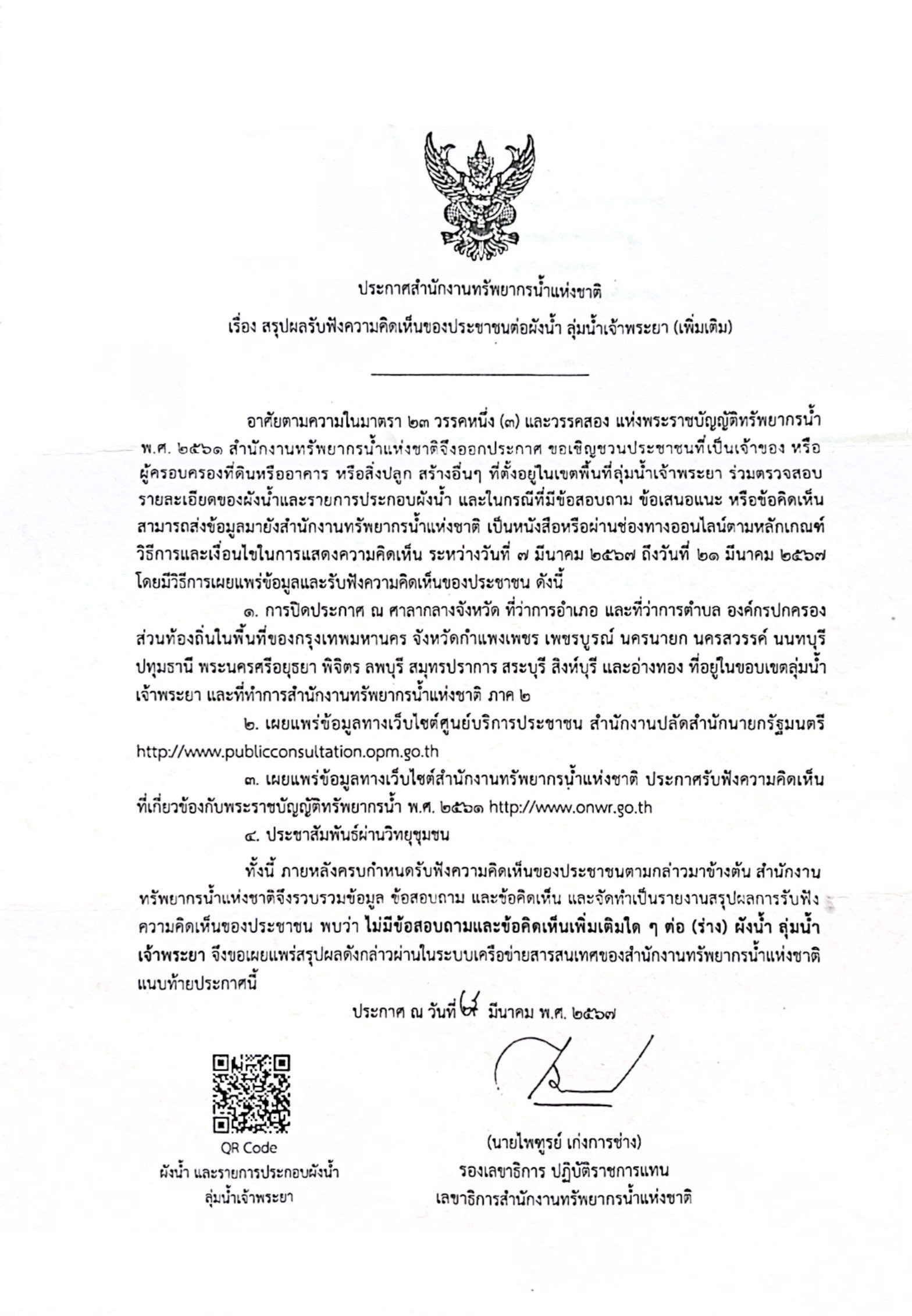 ตามการเชิญชวนประชาชนแสดงความคิดเห็น ระหว่างวันที่ 7 มีนาคม 2567 ถึงวันที่ 21 มีนาคม 2567 รายละเอียดตาม QR Code
