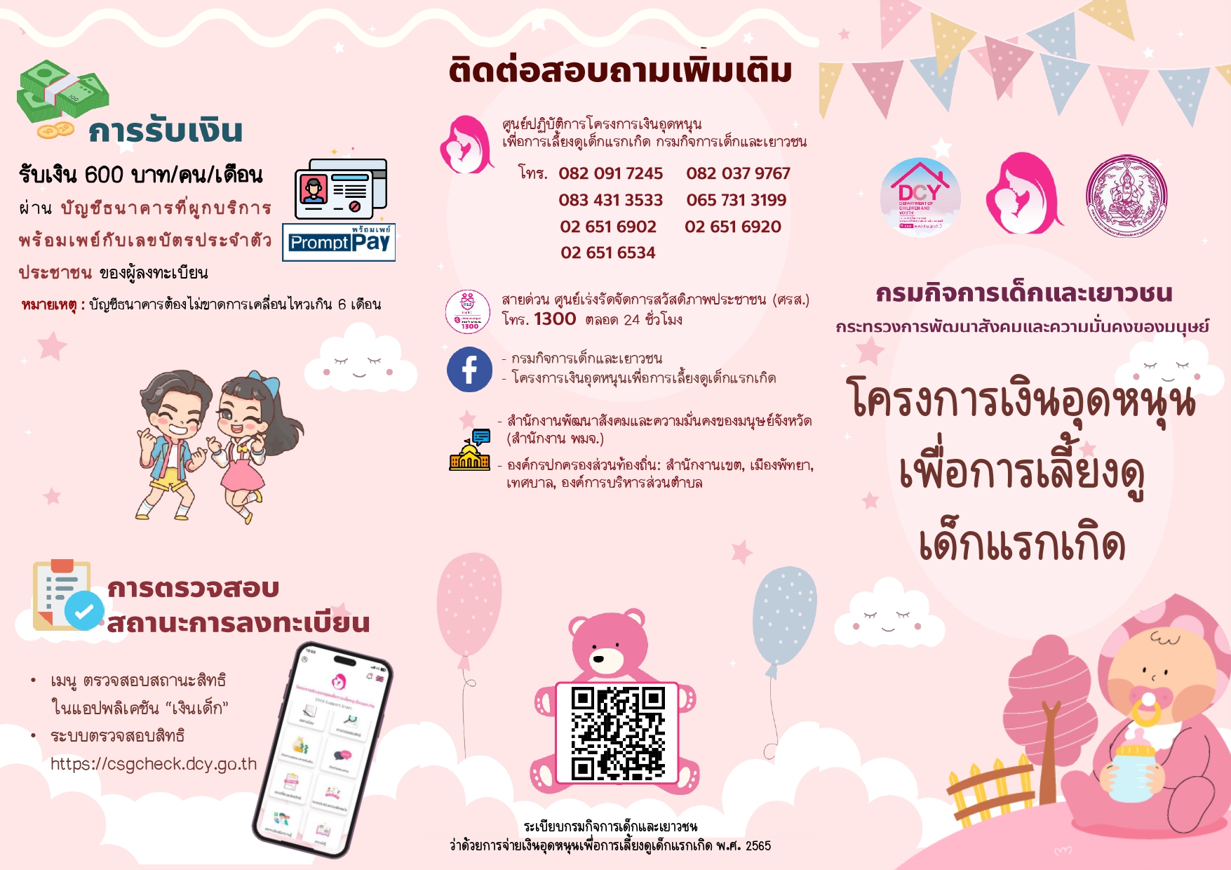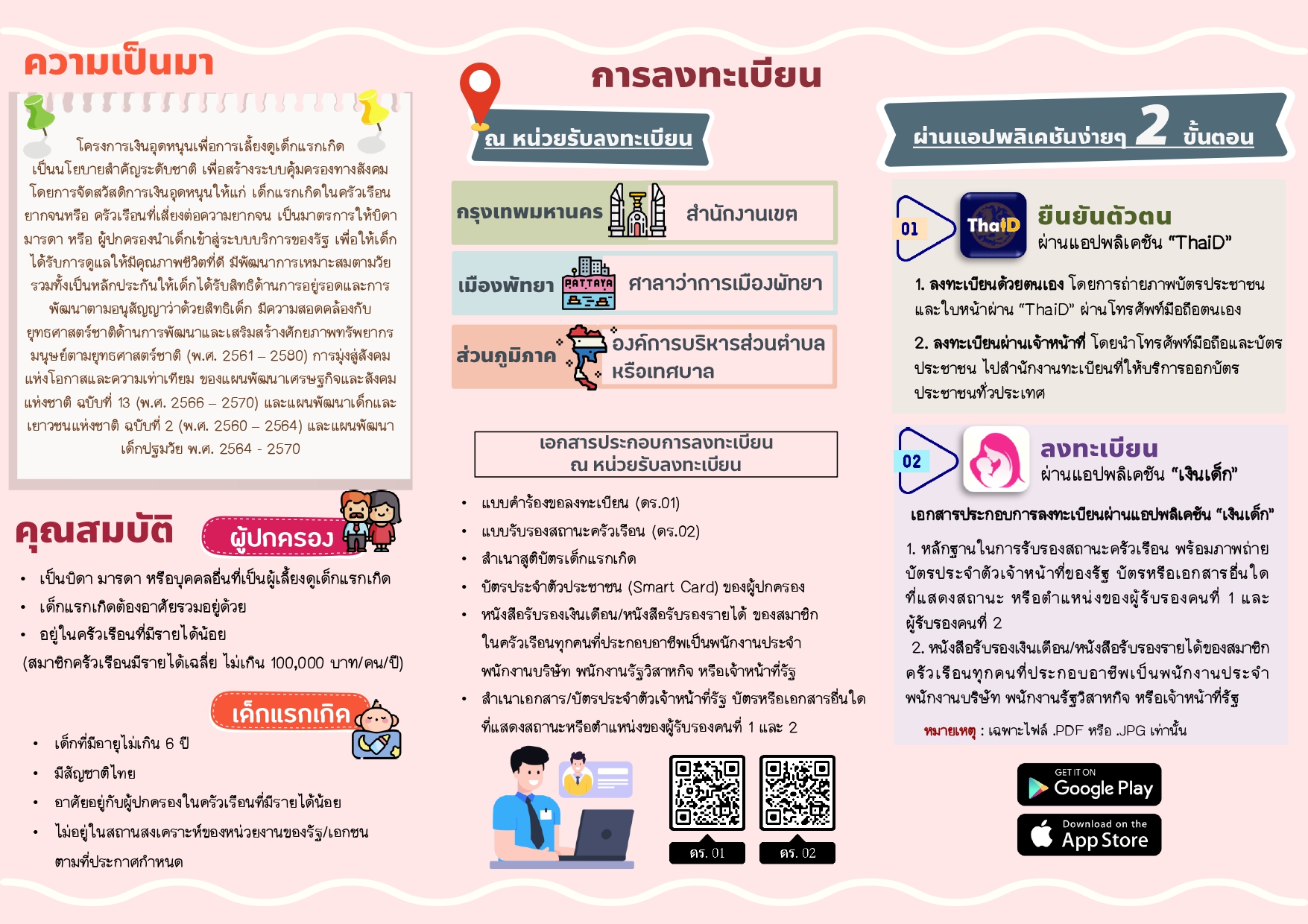 แผ่นพับประชาสัมพันธ์การยืนคำร้องขอลงทะเบียน เพื่อขอรับสิทธิเงินอุดหนุนเพื่อการเลี้ยงดูเด็กแรกเกิด