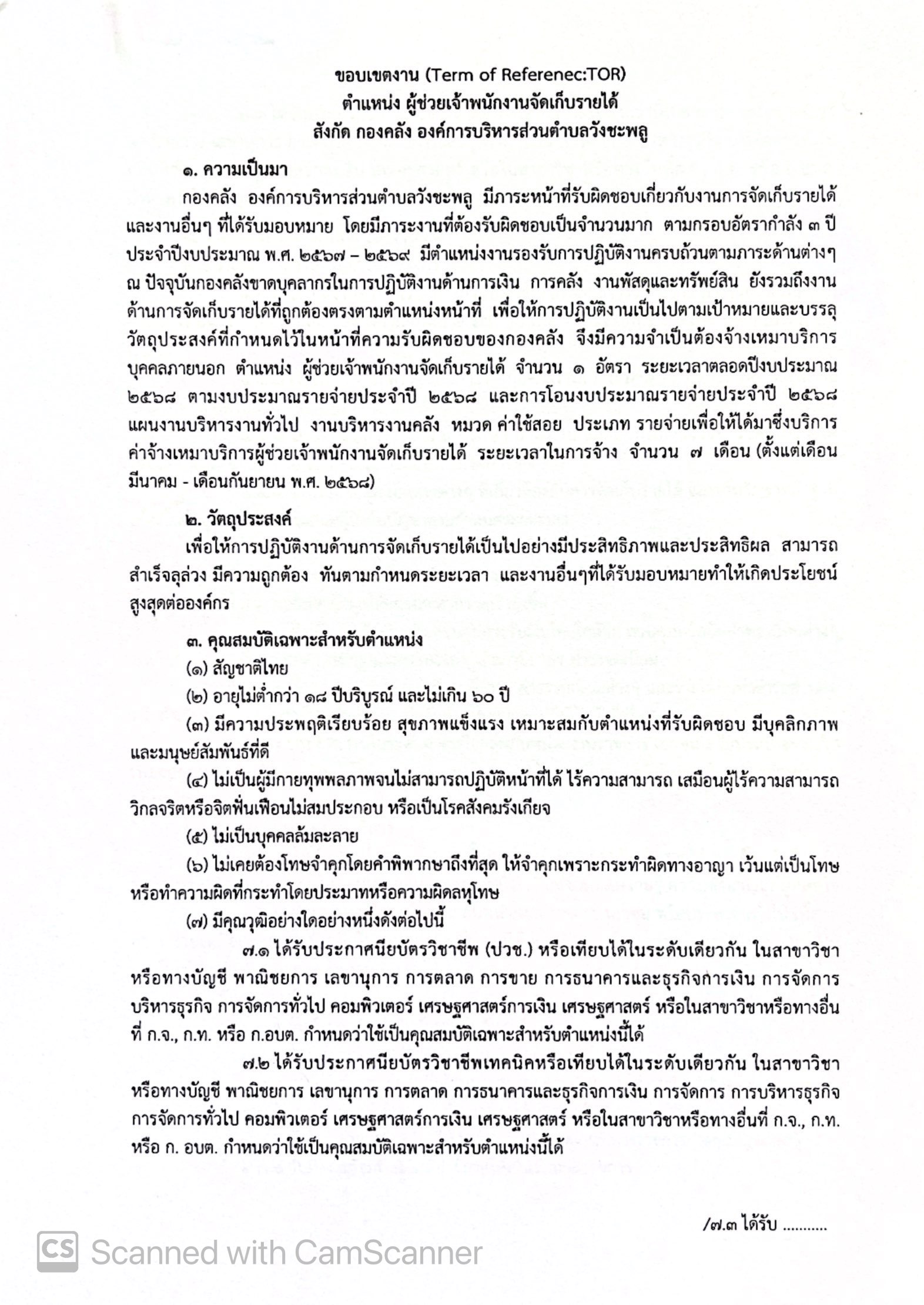 รับสมัครงาน จ้างเหมาบริการ ผู้ช่วยเจ้าพนักงานจัดเก็บรายได้ จำนวน 1 อัตรา
