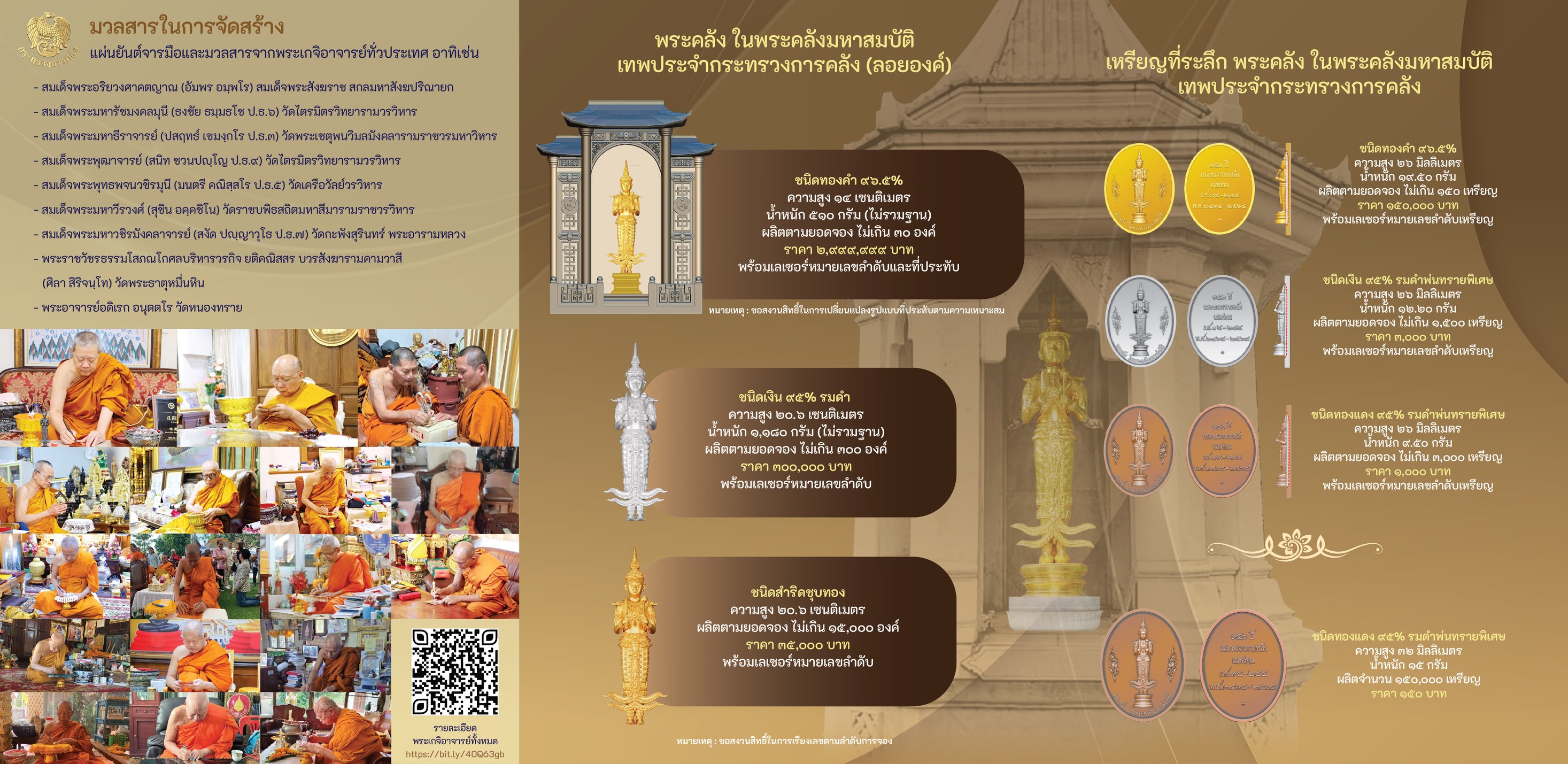 แผ่นพับประชาสัมพันธ์ พระคลัง ในพระคลังมหาสมบัติ เทพประจำกระทรวงการคลัง และเหรียญที่ระลึก เนื่องในโอกาสครบรอบ 150 ปี กระทรวงการคลัง