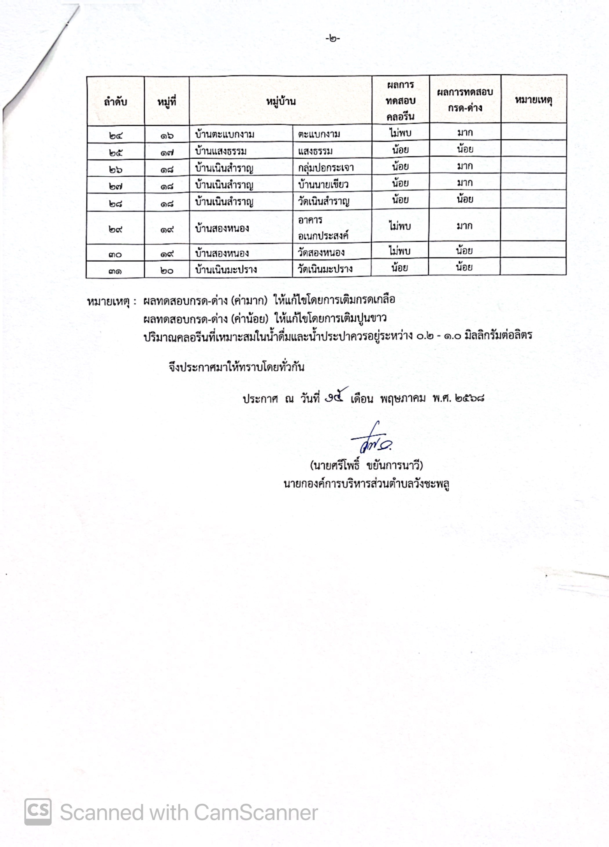 ผลการตรวจสอบวิเคราะห์คุณภาพนํ้าประปาในเขตตำบลวังชะพลู ประจำปีงบประมาณ พ.ศ. 2568