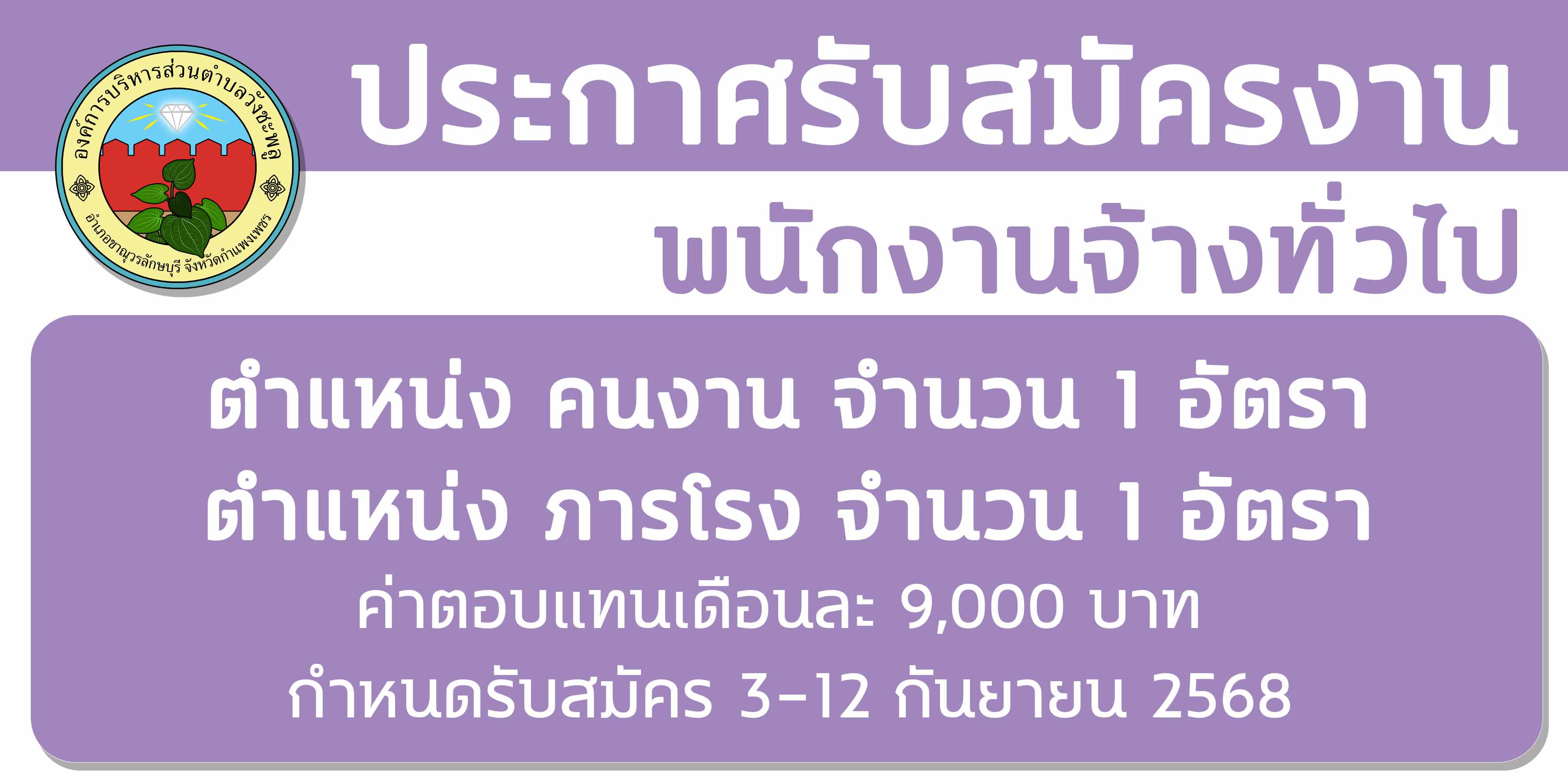 ตำแหน่ง คนงาน จำนวน 1 อัตรา ตำแหน่ง ภารโรง จำนวน 1 อัตรา กำหนดรับสมัครระหว่างวันที่ 3-12 กันยายน 2568 รายละเอียดตามประกาศองค์การบริหารส่วนตำบลวังชะพลู เรื่อง รับสมัครบุคคลเพื่อสรรหาและคัดเลือกเป็นพนักงานจ้า