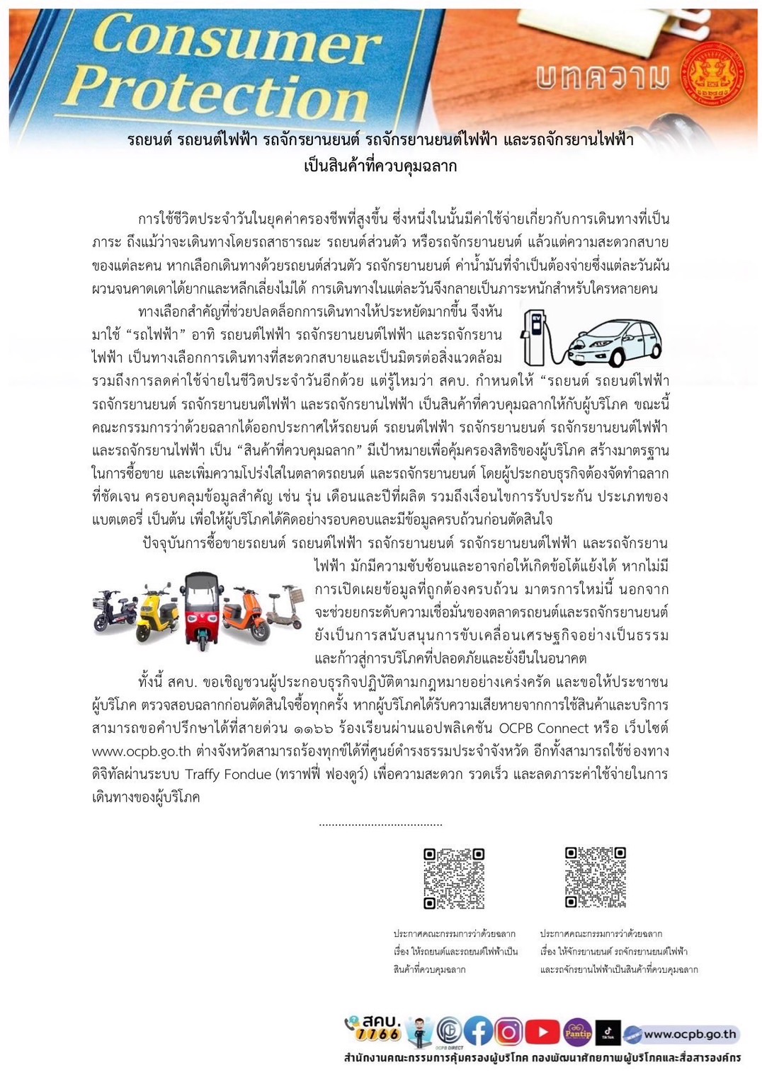 1.รถยนต์ รถยนต์ไฟฟ้า รถจักรยานยนต์ รถจักรยานยนต์ไฟฟ้า และจักรยานไฟฟ้า เป็นสิ้นค้าที่ควบคุมฉลาก