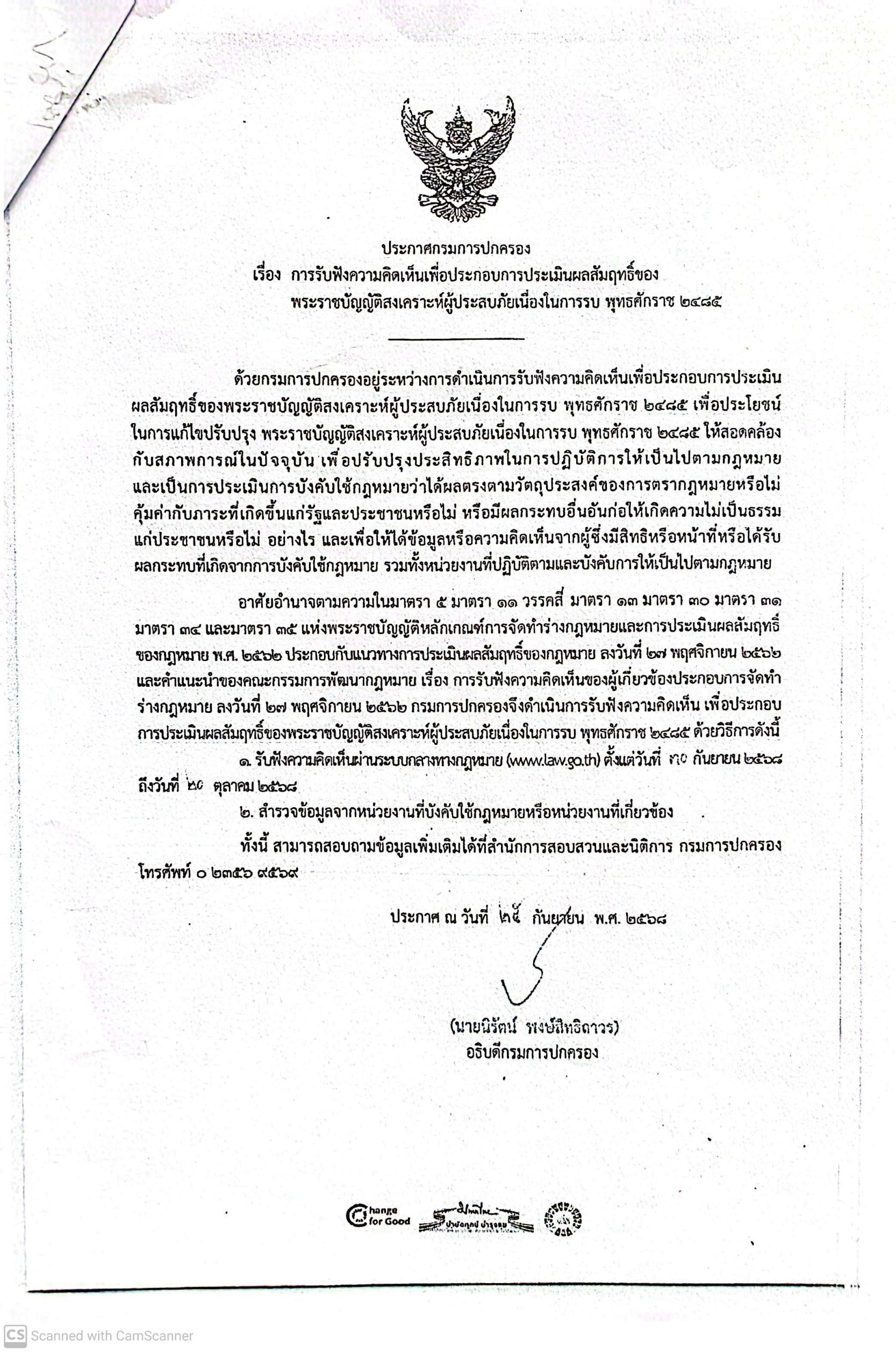 การรับฟังความคิดเห็นประกอบการประเมินผลสัมฤทธิ์ของพระราชบัญญัติสงเคราะห์ผู้ประสบภัย เนื่องในการรบ พุทธศักราช 2485