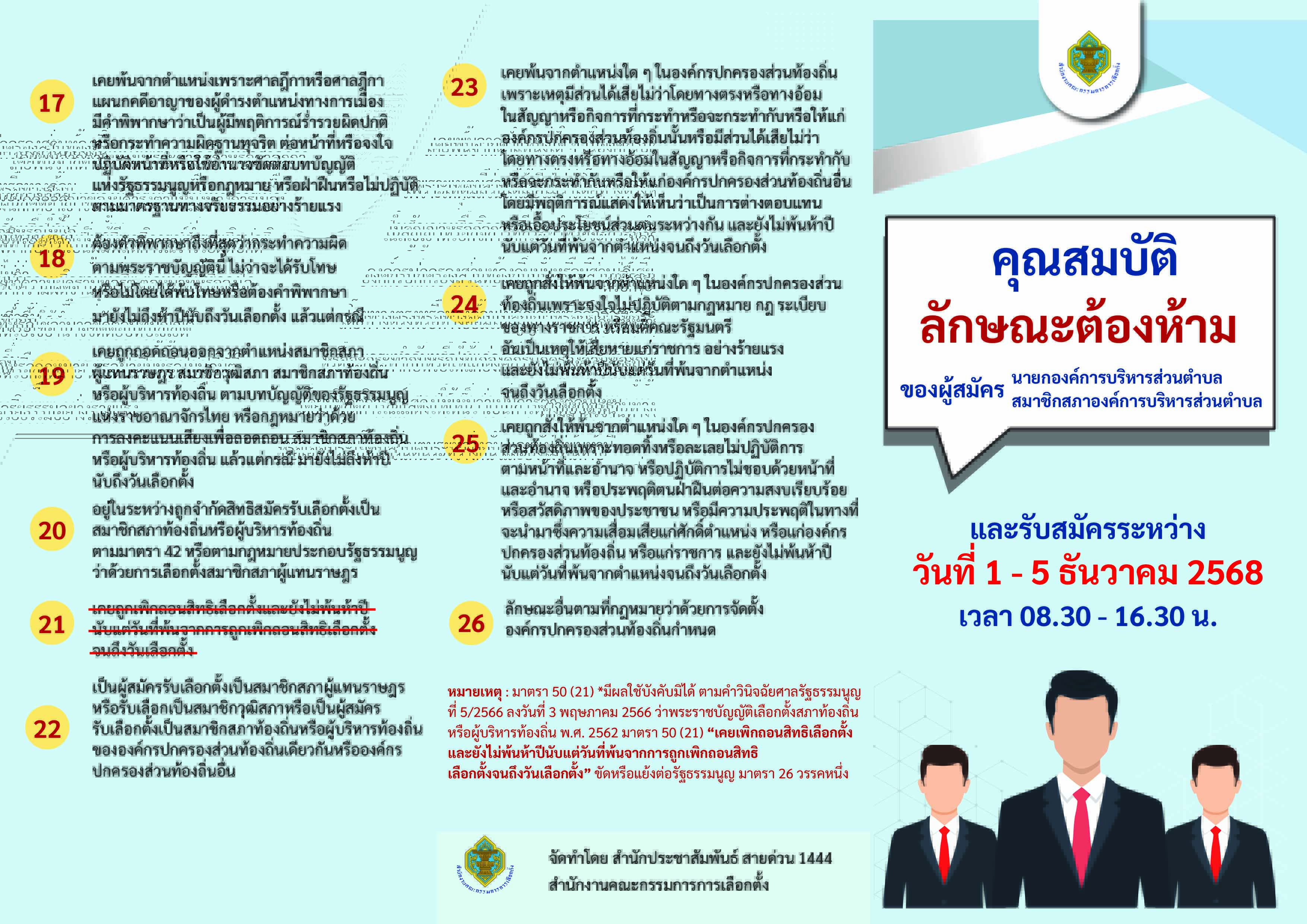 ✅ใบรับรองแพทย์ ต้องระบุผลตรวจเรื่องยาเสพติดให้โทษ ตามมาตรา 50 (1) แห่งพระราชบัญญัติการเลือกตั้งสมาชิกสภาท้องถิ่นหรือผู้บริหารท้องถิ่น พ.ศ. 2562 และที่แก้ไขเพิ่มเติม