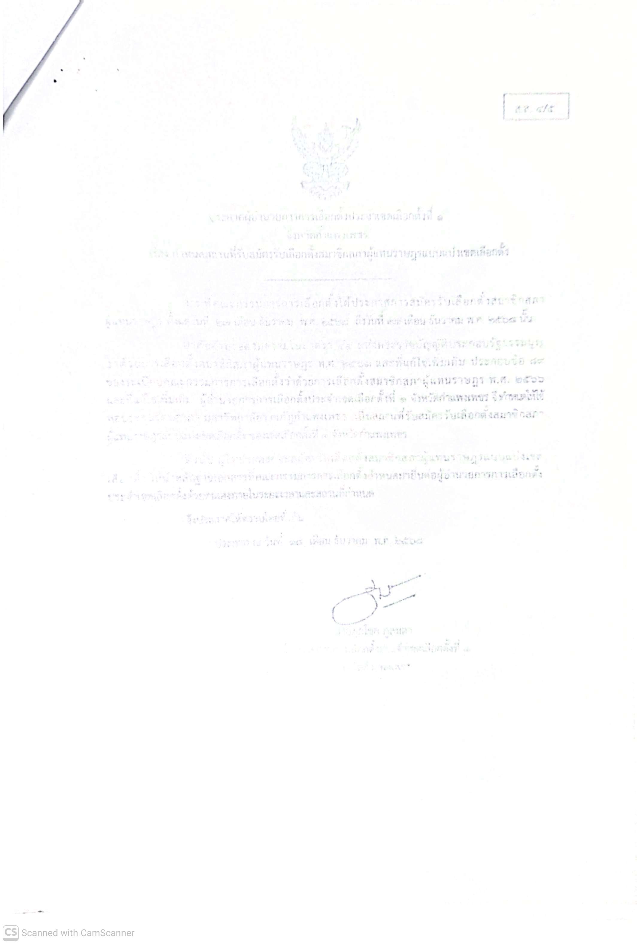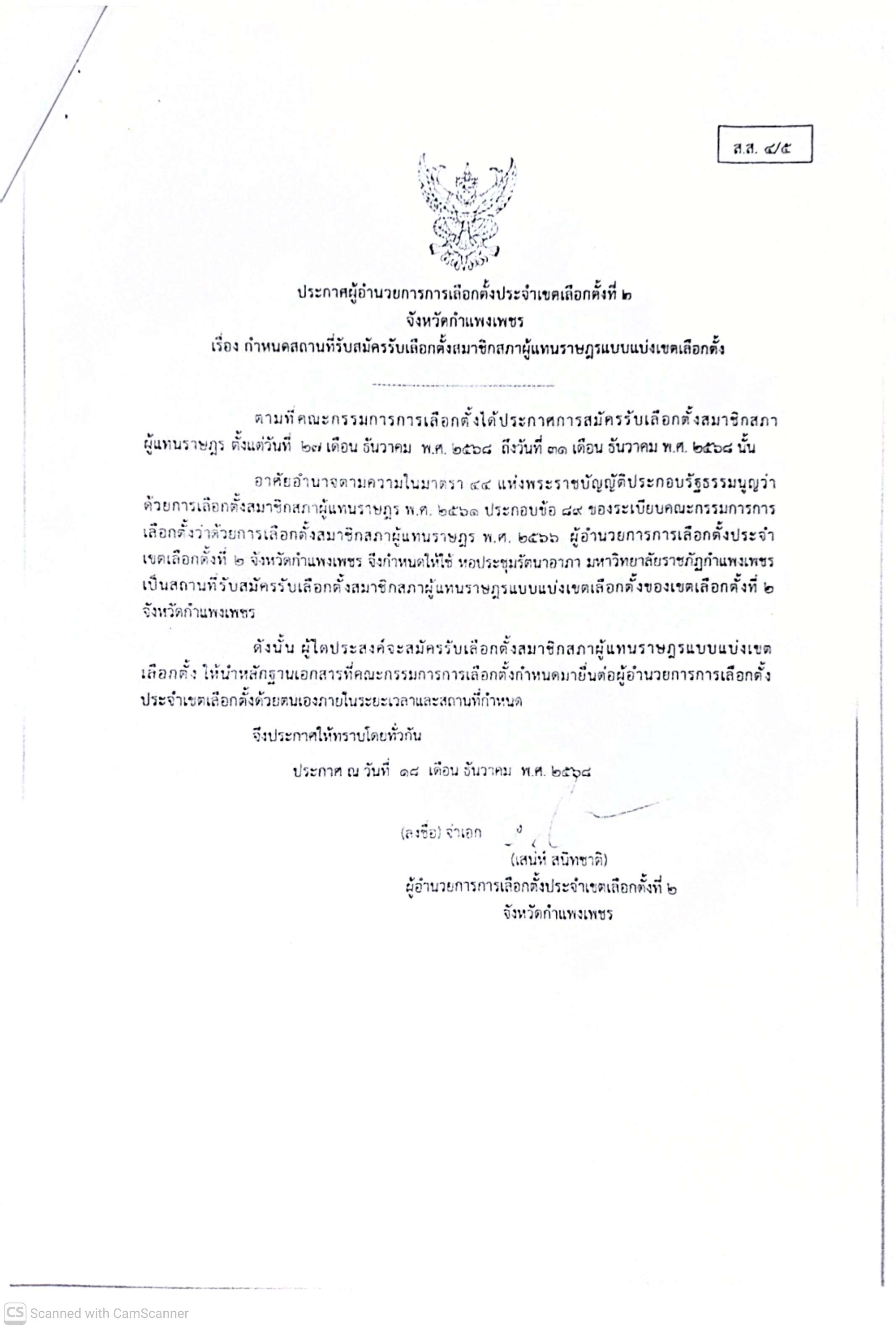 ประกาศกำหนดสถานที่รับสมัครรับเลือกตั้งสมาชิกสภาผู้แทนราษฎรแบบแบ่งเขตเลือกตั้ง