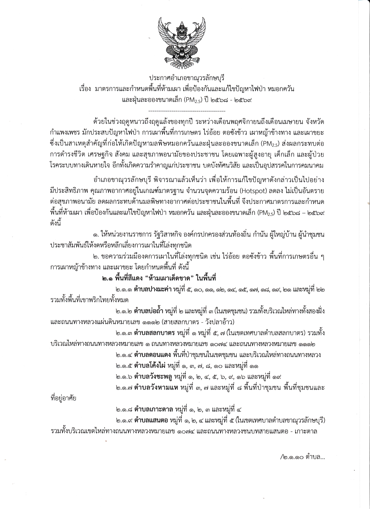 พื้นที่สีแดง ห้ามเผาเด็ดขาด