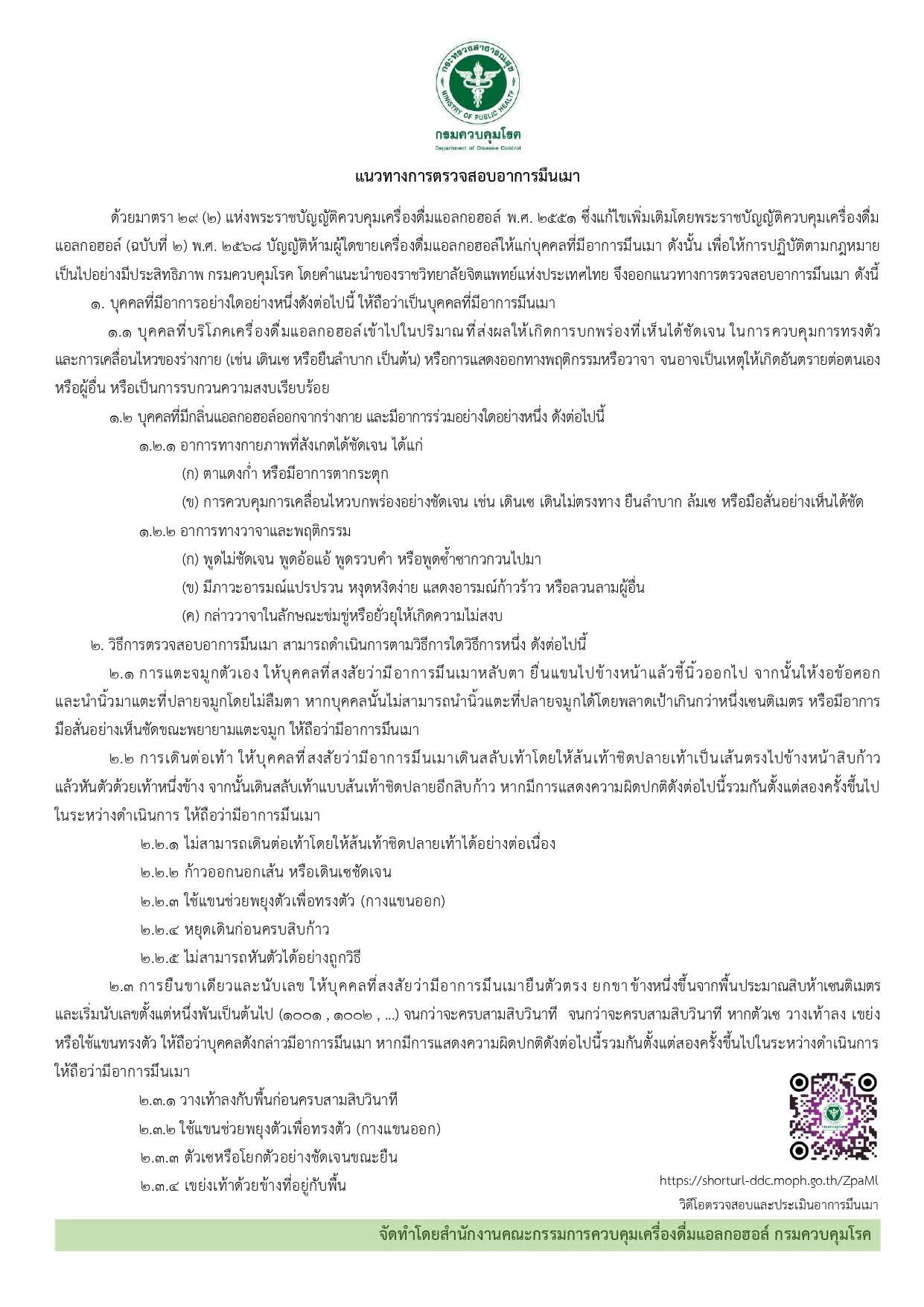 ประชาสัมพันธ์แนวทางการตรวจสอบอาการมึนเมา