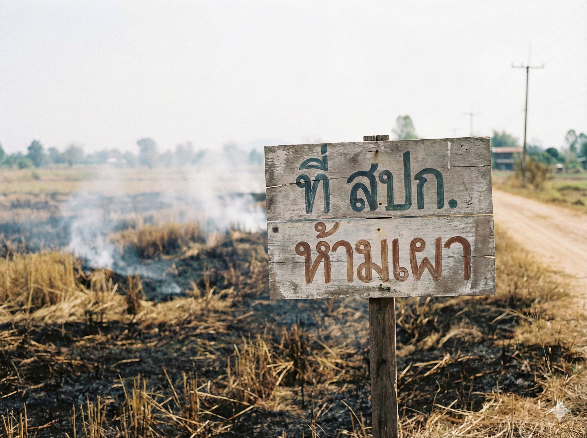 ห้ามกำจัดวัสดุทางการเกษตร ฟางข้าว ตอซังข้าว ซังข้าวโพด หญ้า หรือขยะมูลฝอย หรือสิ่งอันไม่พึงประสงค์ใดๆ โดยการเผาหากพบเกษตรกรรายใดมีเจตนาผ่าฝืน ไม่ปฏิบัติตาม จะดำเนินการสั่งให้สิ้นสิทธิการเข้าทำประโยชน์ในที่ดินรายละเอียดตามประกาศ
