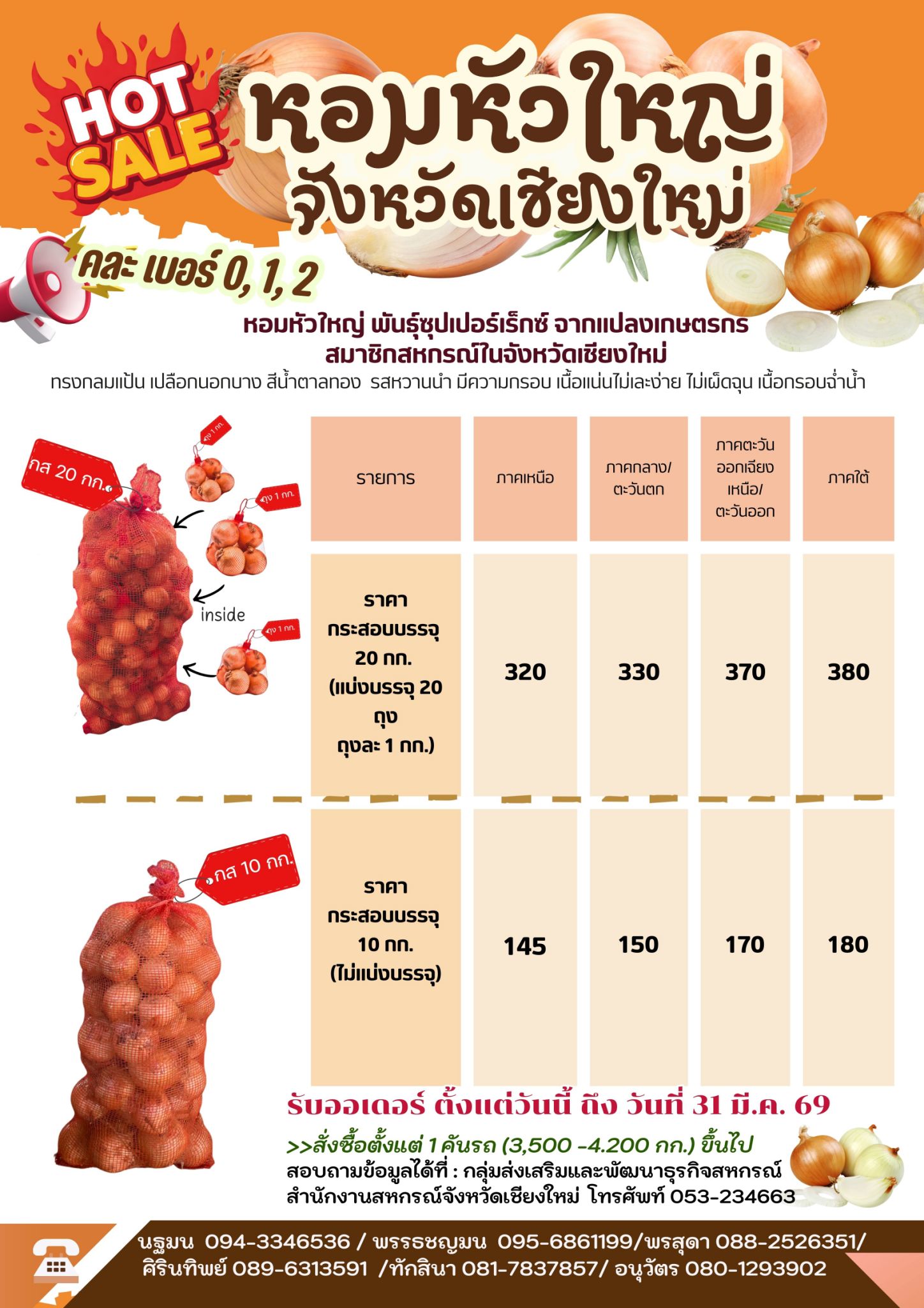 เชิญชวนสนับสนุนและสั่งซื้อผลิตภัณฑ์หอมหัวใหญ่ของสมาชิกสหกรณ์ เกษตรกรจังหวัดเชียงใหม่