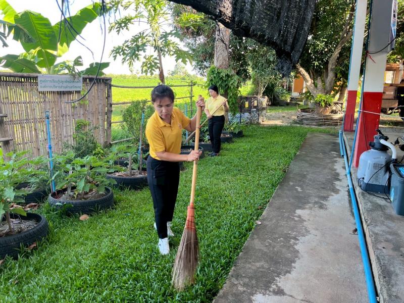 ทำความสะอาดที่ทำการองค์การบริหารส่วนตำบลวังชะพลู กวาดใบไม้ เก็บขยะ คัดแยกขยะ และปลูกต้นไม้เพิ่มเติมในแปลงเกษตรพืชผักสวนครัว