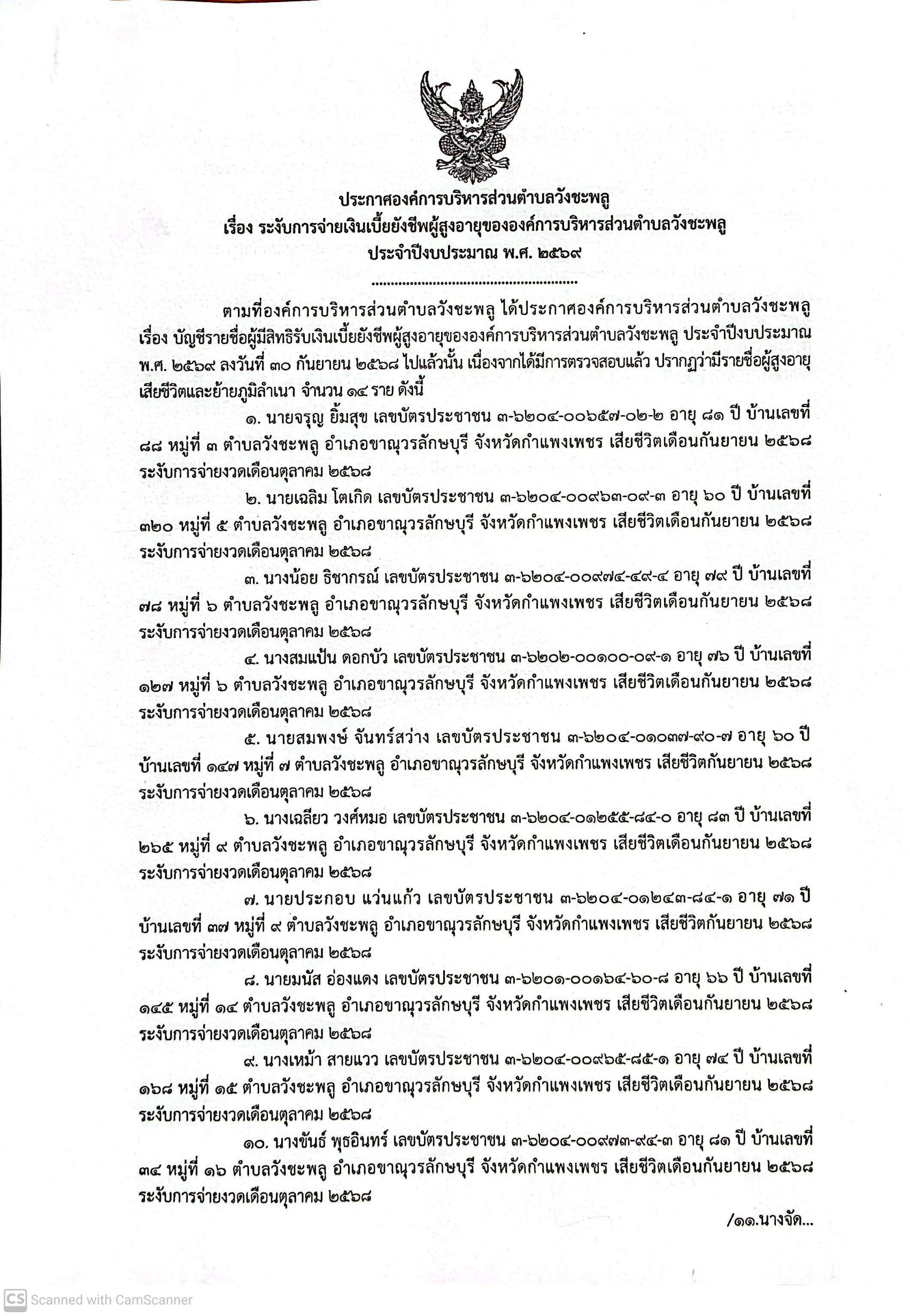 ชื่อเรื่อง : ประกาศองค์การบริหารส่วนตำบลวังชะพลู เรื่อง ระงับจ่ายเงินเบี้ยยังชีพผู้สูงอายุขององค์การบริหารส่วนตำบลวังชะพลู ประจำปีงบประมาณ พ.ศ. 2568
