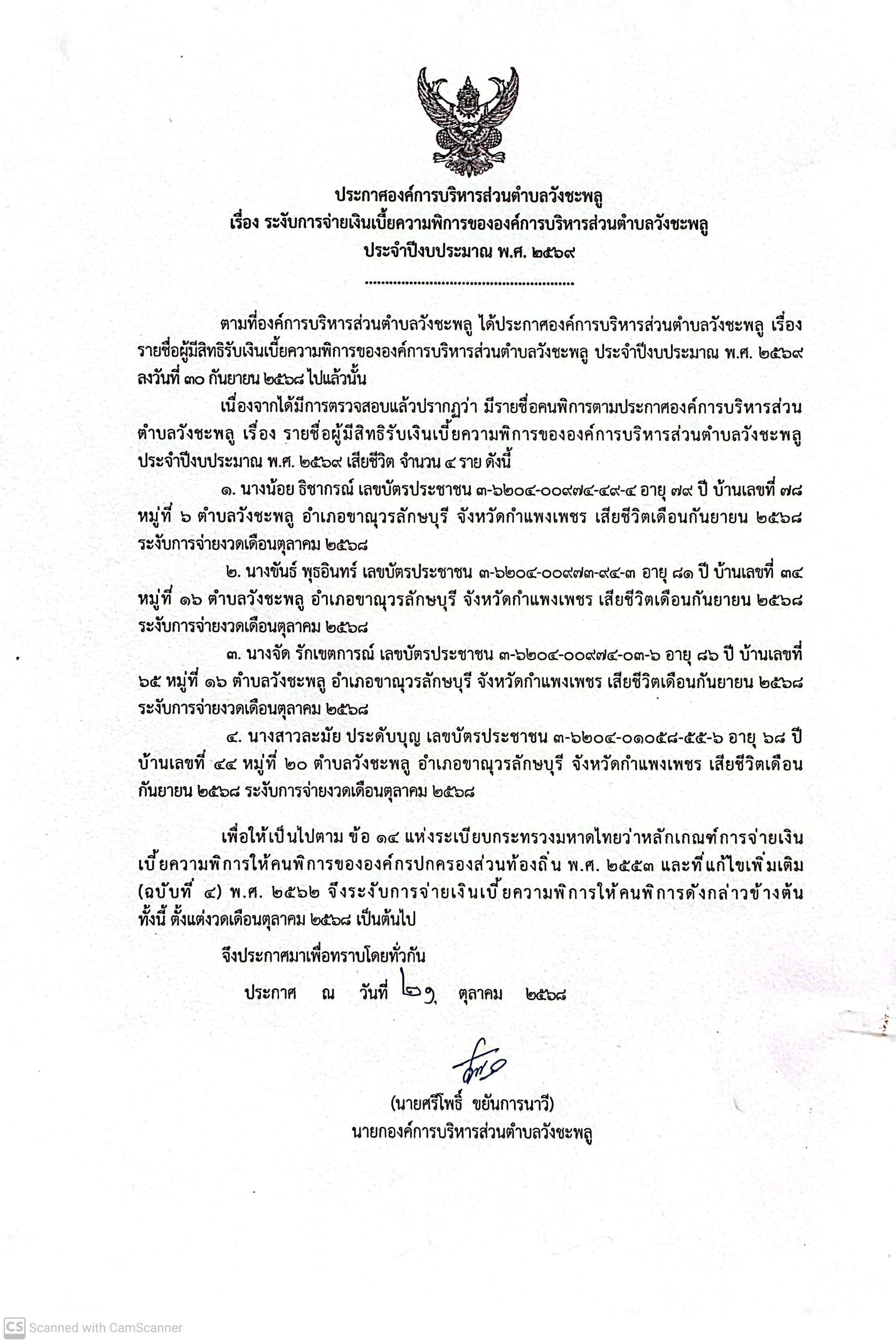 ชื่อเรื่อง : ประกาศองค์การบริหารส่วนตำบลวังชะพลู เรื่อง ระงับการจ่ายเงินเบี้ยความพิการขององค์การบริหารส่วนตำบลวังชะพลู ประจำปีงบประมาณ พ.ศ. 2568