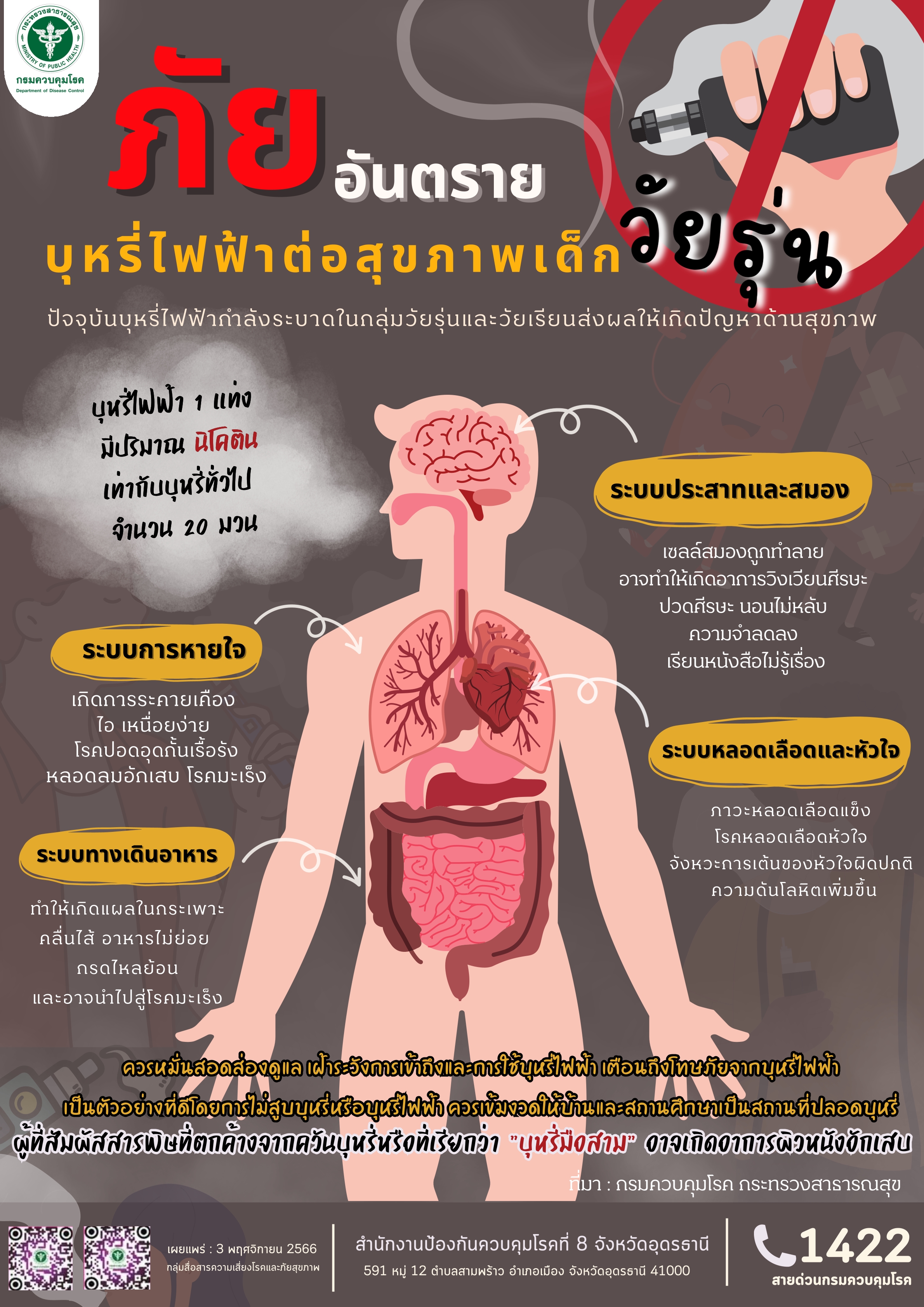 ❌บุหรี่ไฟฟ้าผิดกฎหมาย ✅เลิกสูบ โทร ฟรี 1600 ผลของควันบุหรี่ต่อสุขภาพของผู้ที่ได้รับควันบุหรี่ ????กลุ่มหญิงตั้งครรภ์ ????ทารกในครรภ์ ????กลุ่มเด็กเล็ก ????กลุ่มผู้ใหญ่